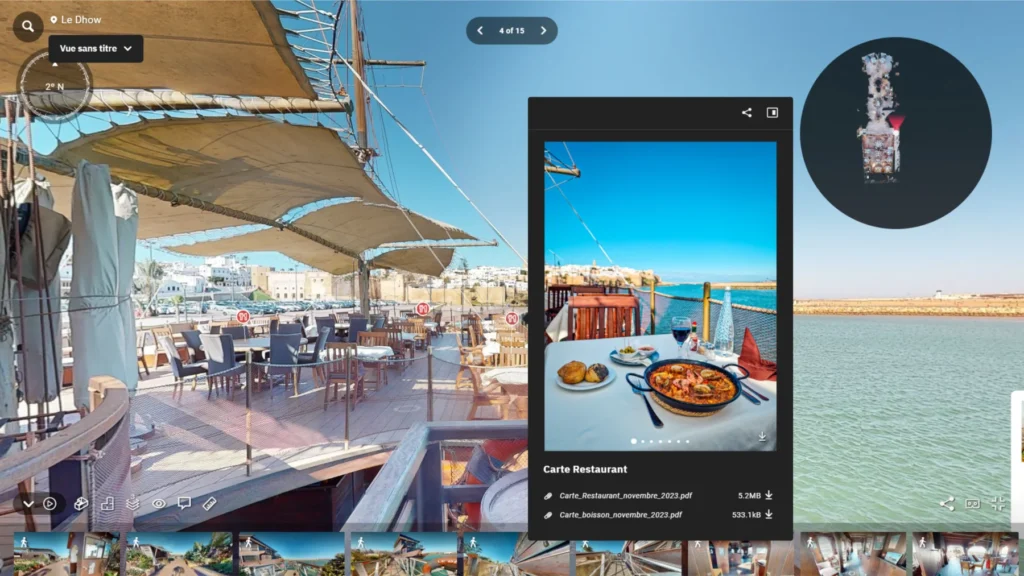 Visite virtuelle immersive pour la mise en valeur de l’ambiance du restaurant.